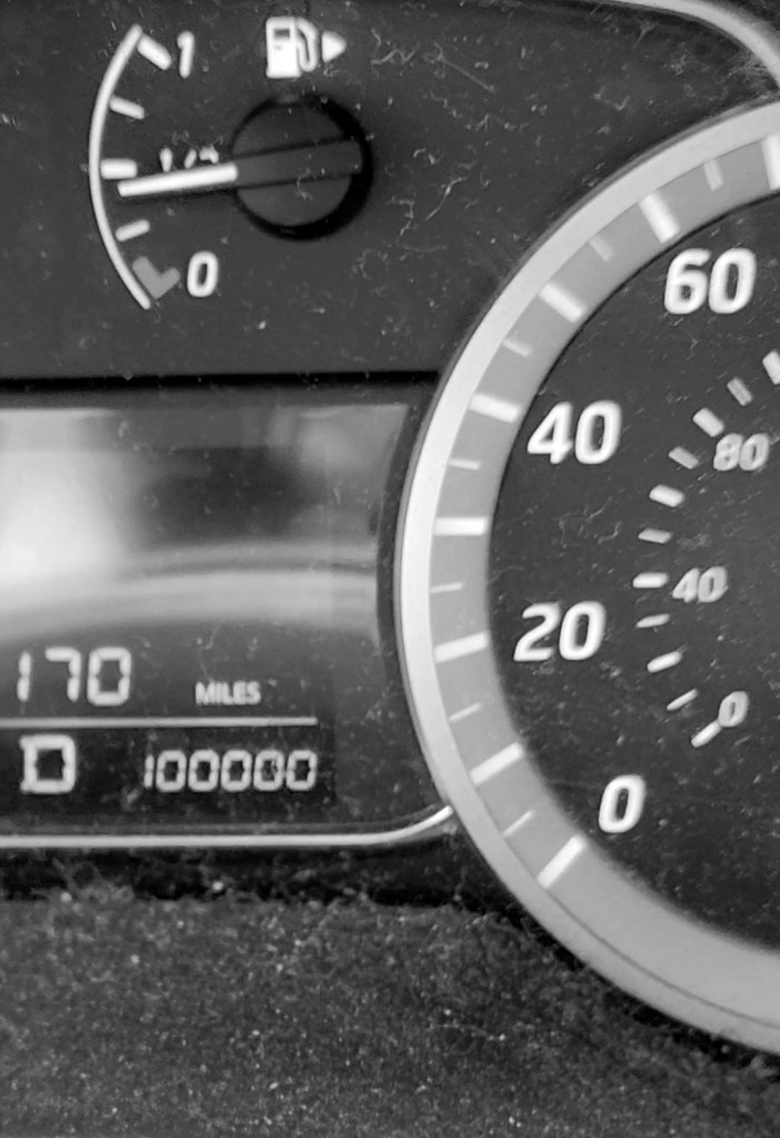 When I was driving over to the dealership with Baby, I looked down at the odometer and realized she was a few days shy of her 100,000th mile. I nearly cried. I had been so excited to celebrate her 100,000th and planned to make it a big deal and have cake! But things ended up moving faster than I expected and she was still 80 miles away.