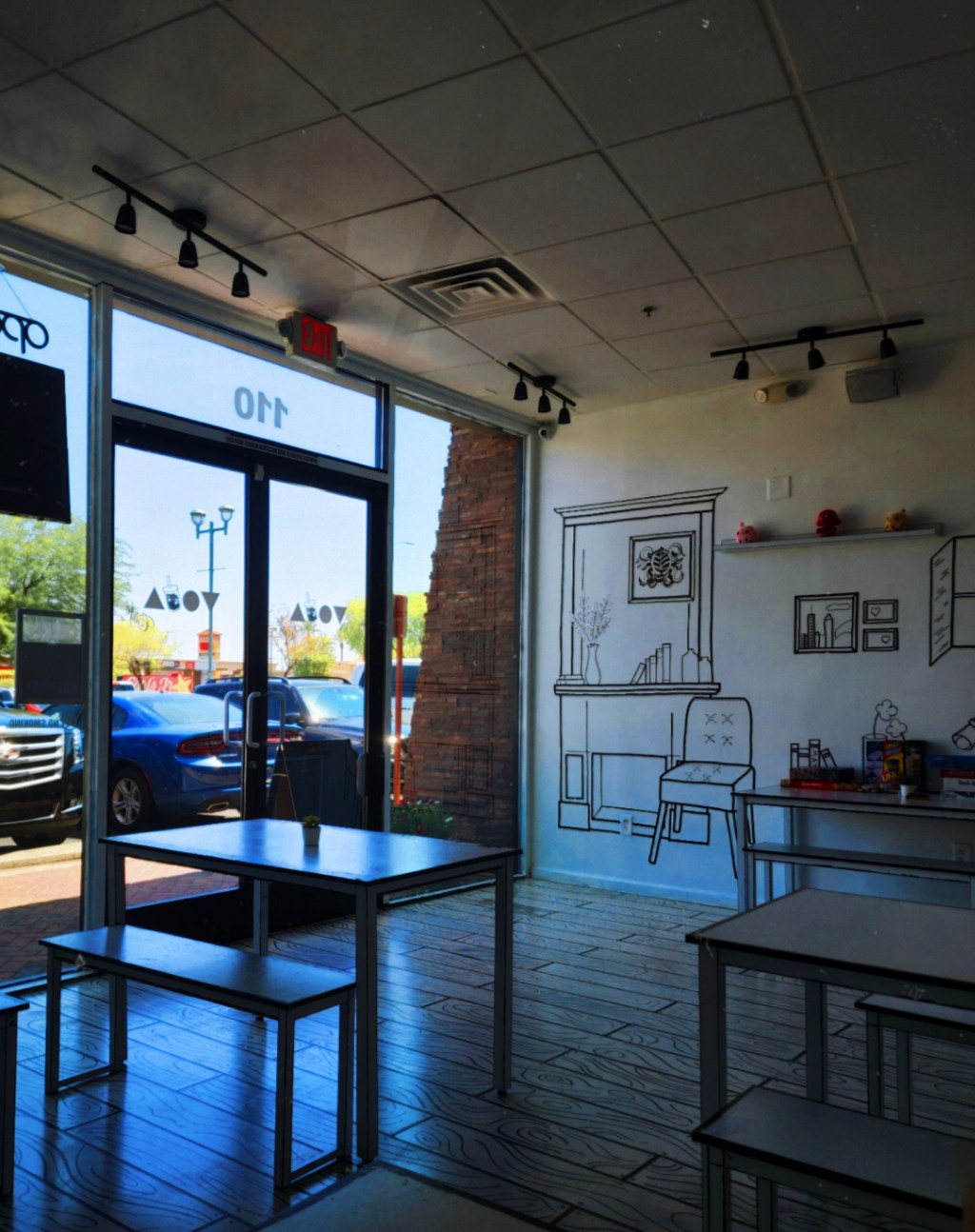 Vova Cafe has interest and appeal coming out of its ears. From the colorful, perfectly blended smoothies and iconic coffee drinks you might spot in a Korean Cafe vlog to the artistic theme that decorates each wall, creating a 2D look throughout the entirety of the space.
